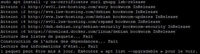 Ensuite il faut ajouter la clé GPG officielle de docker, c’est ce qui permet de vérifier l’authenticité des paquets téléchargés :
