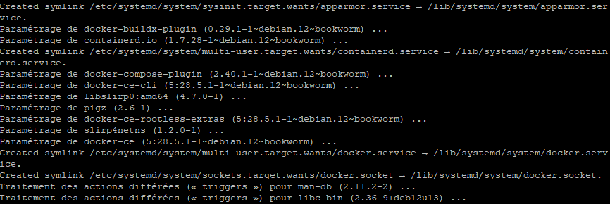 sudo apt install -y docker-ce docker-ce-cli containerd.io docker-buildx-plugin docker-compose-plugin