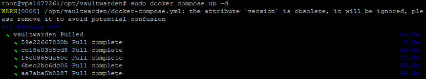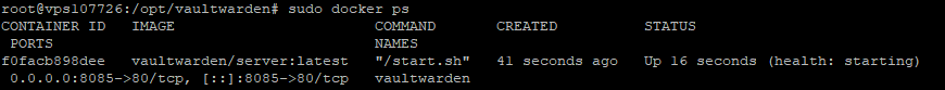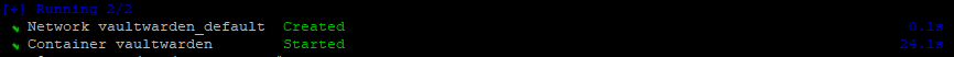 Il faut maintenant lancer le container. Toujours dans /opt/vaultwarden