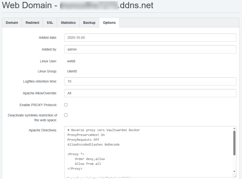 Il faut ajouter l'adresse URL du coffre sur votre ISP Config comme vous l'avez probablement déjà fait avec vos sites internet.