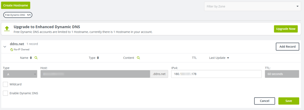 Pour information ici j'ai choisi l'extension ddns.net mais d'autres sont disponibles.